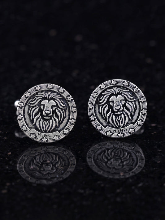 Regal Lion Head Engraved Cufflinks - 'KING' Silver-Tone Command attention and exude confidence with these...