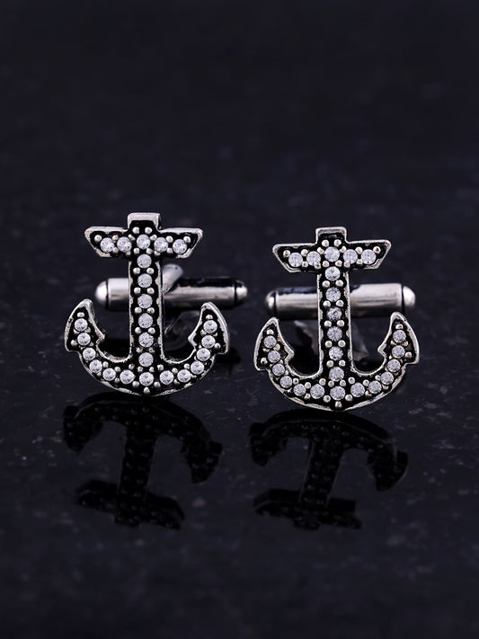 Nautical Anchor Cufflinks with Pave-Set Rhinestones Drop anchor on style with these brilliant, eye-catching Anchor...