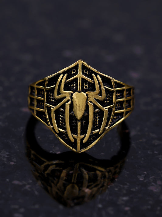 Bold Spider Web Shield Ring - Gold & Black Vintage Style Unleash your inner hero...