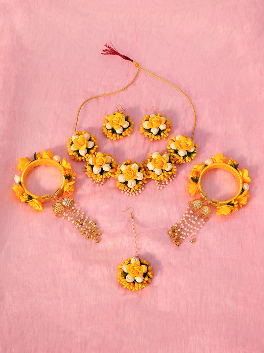 Presenting a cheerful and complete Artificial Floral Jewelry Set, beautifully designed in sunny yellow and...