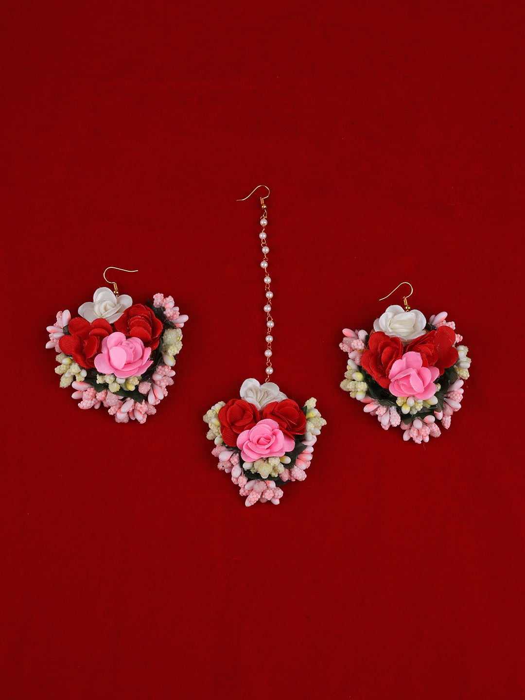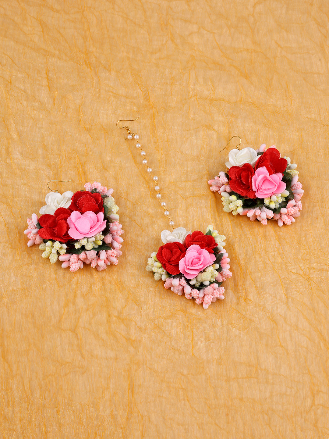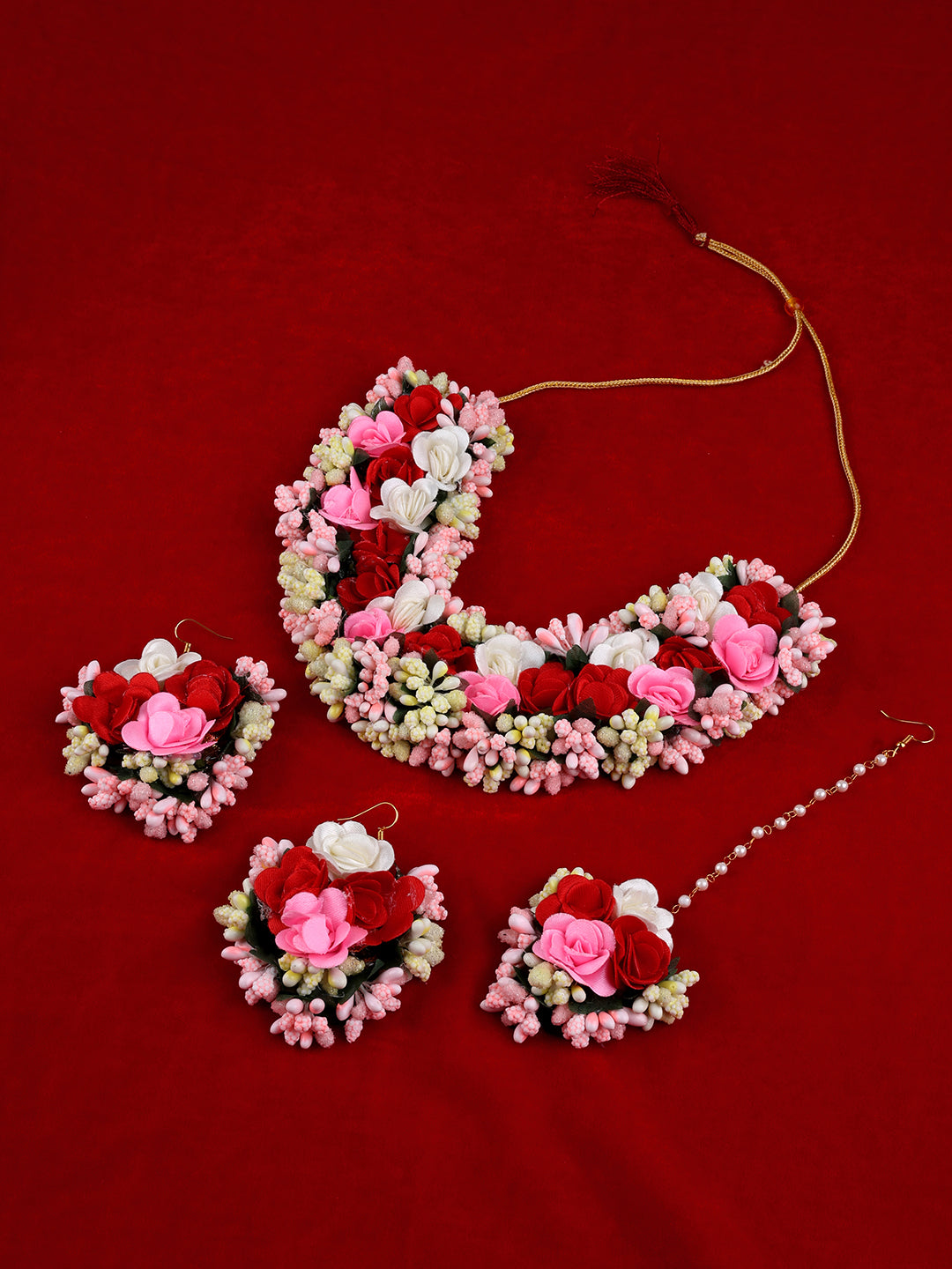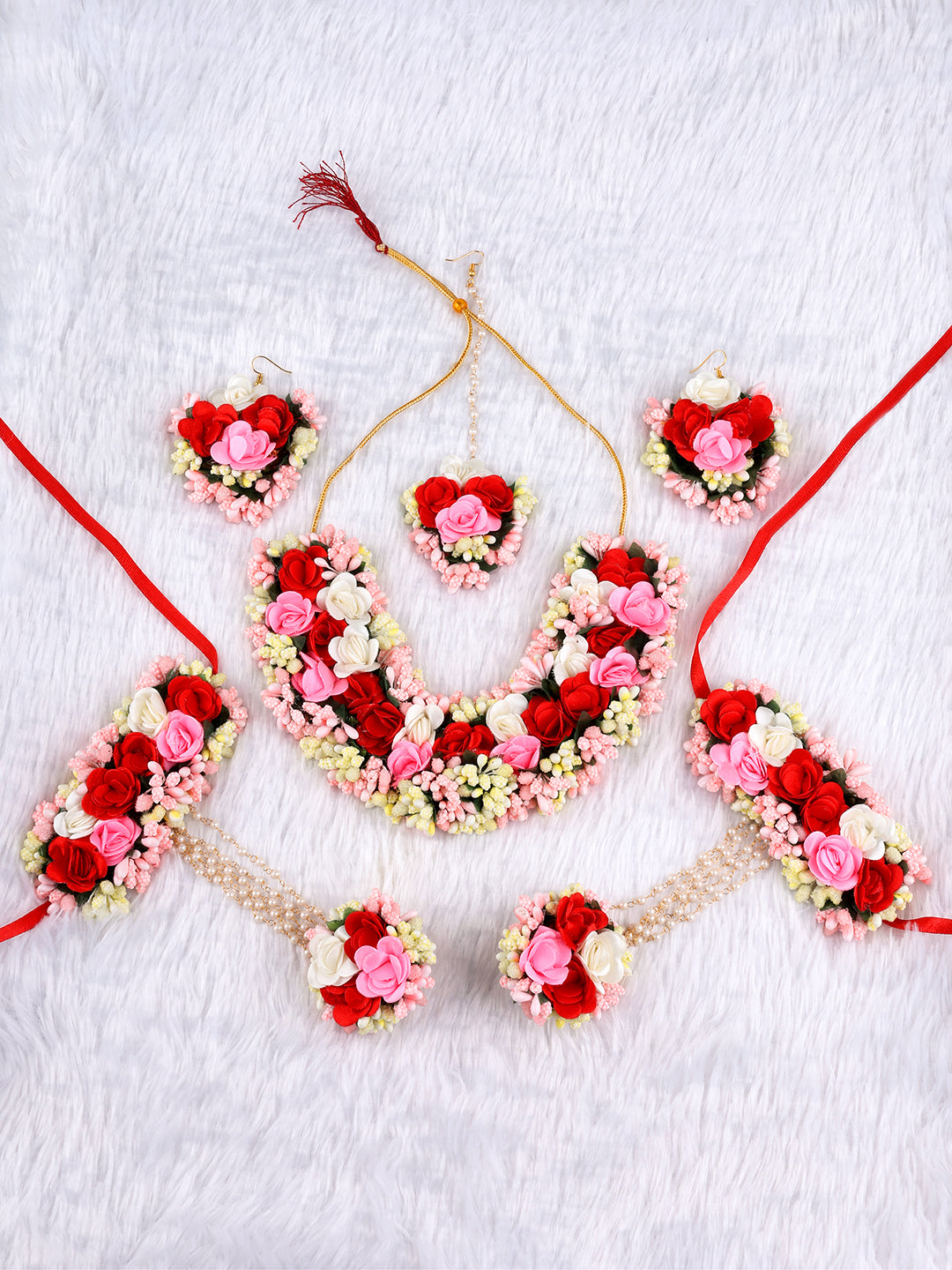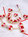 Vibrant Red & Pink Floral Haldi/Mehendi Jewelry Set