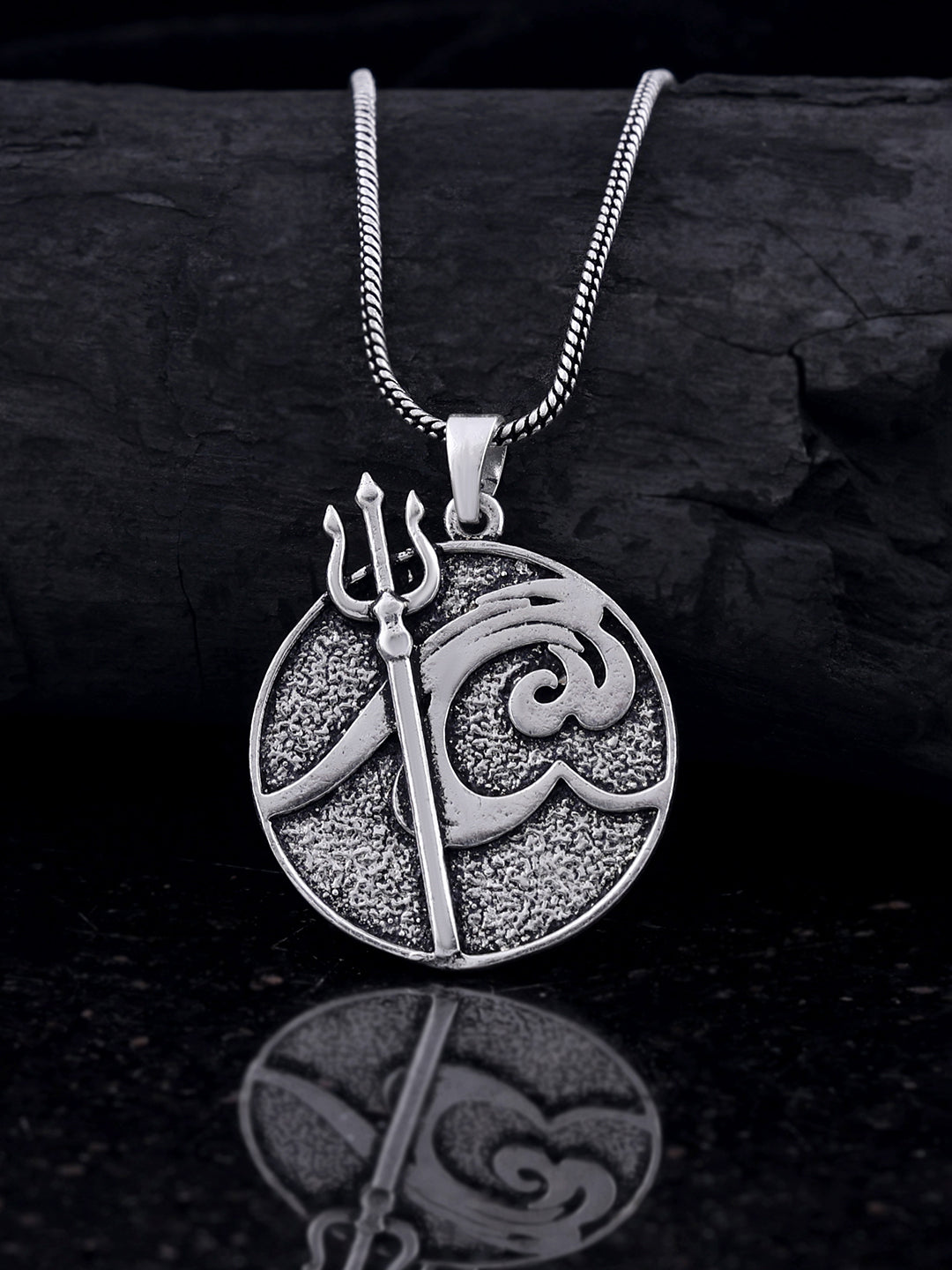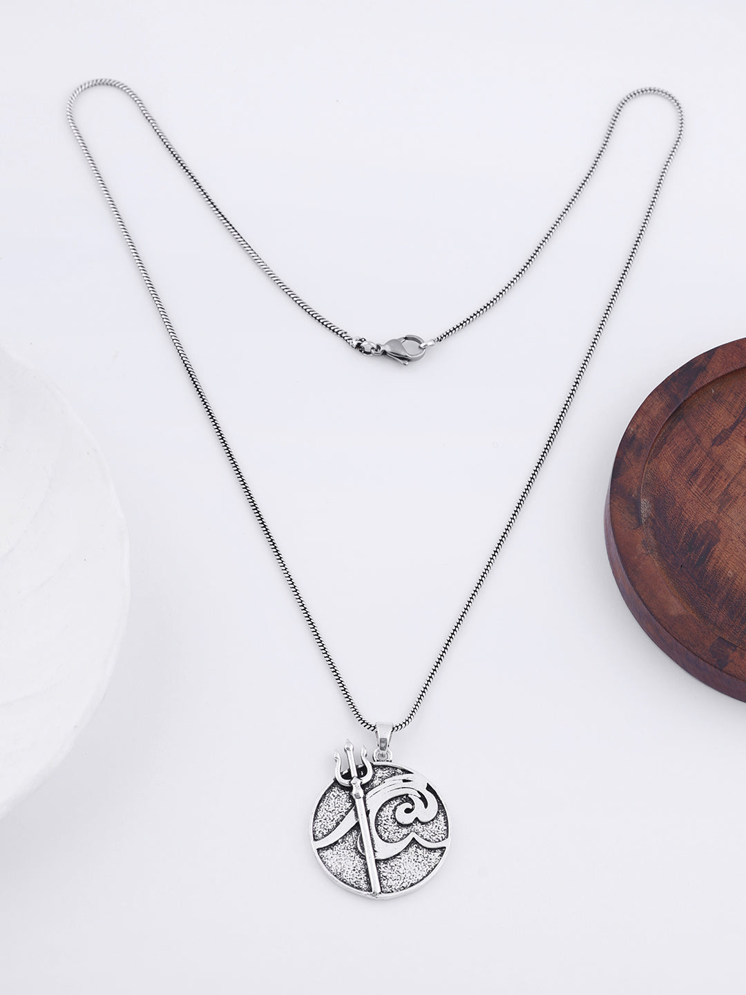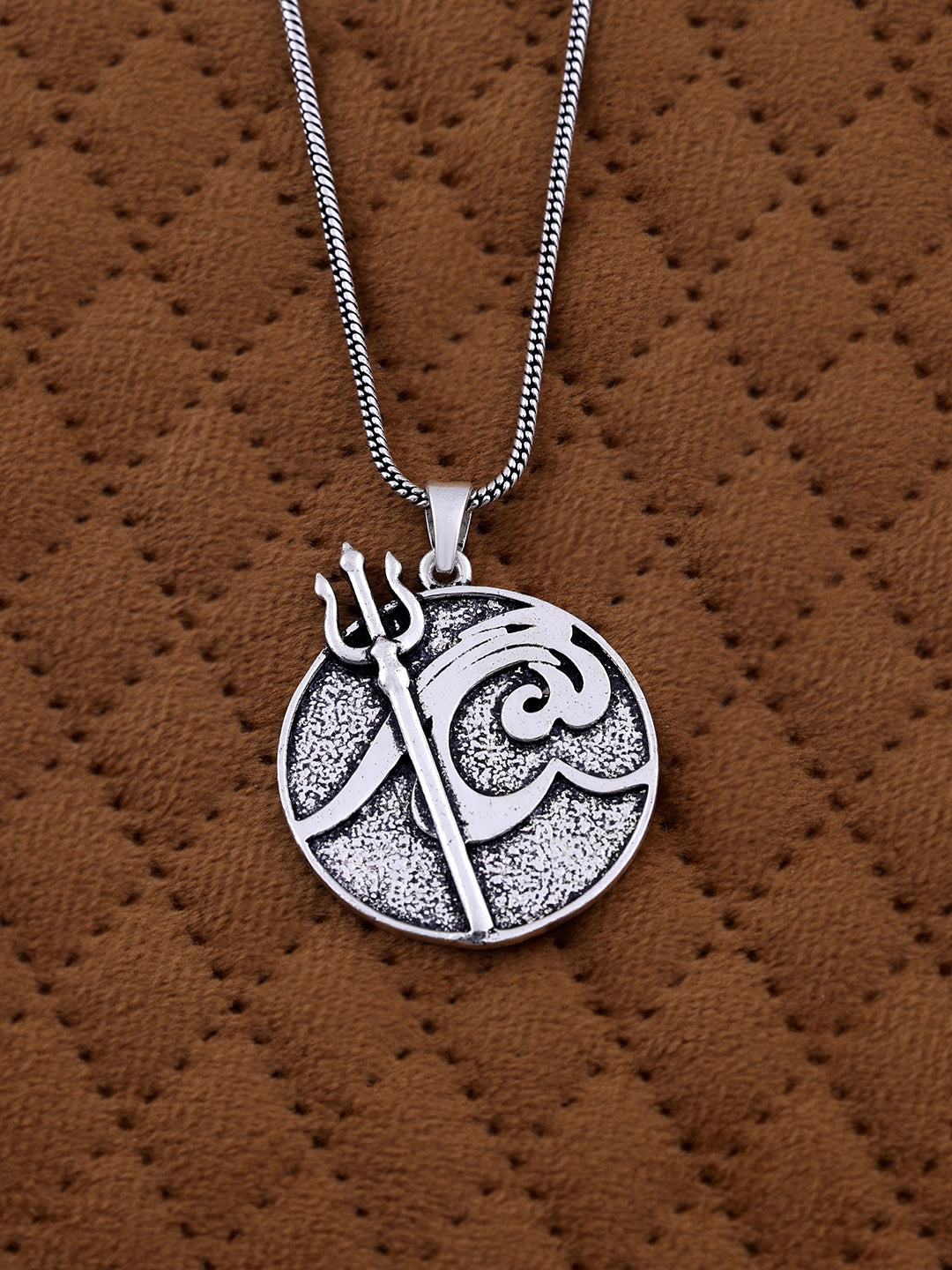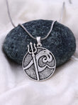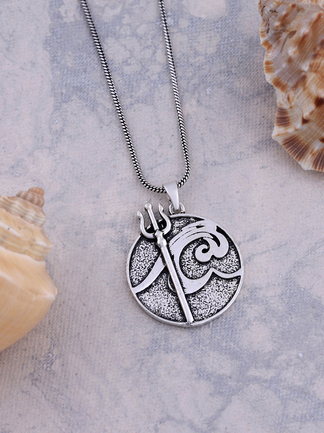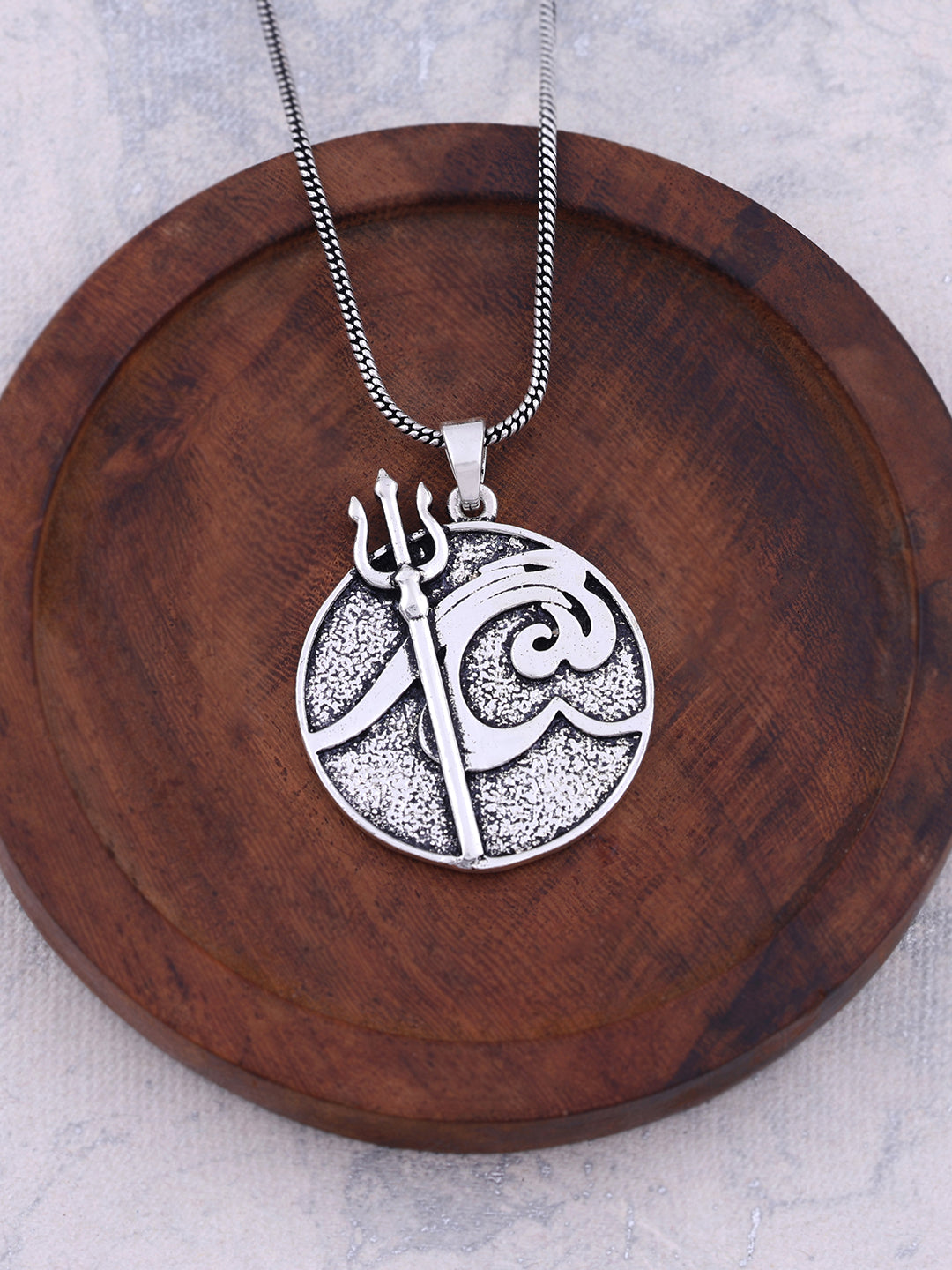 Oxidized Silver Trident & Ocean Waves Medallion Necklace