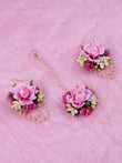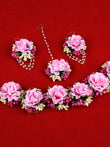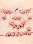 Elegant Pink Peony Floral Haldi/Mehendi Jewelry Set